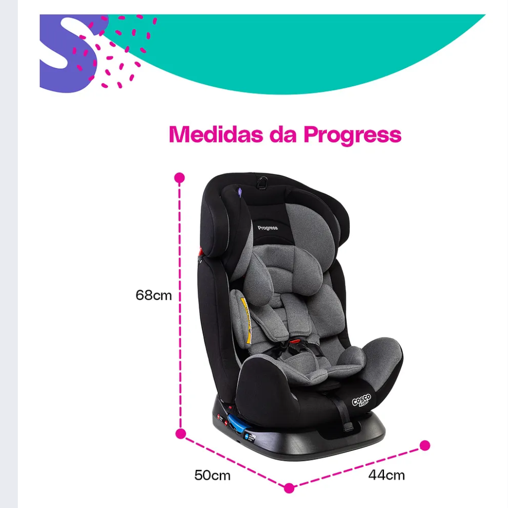 A Cadeirinha Progress da Cosco Kids é a escolha ideal para acompanhar o crescimento do seu filho de forma segura e confortável, desde o nascimento até aproximadamente 10 anos (até 36 kg). Com duas posições de reclinação, oferece uma posição especial para recém-nascidos, podendo ser instalada de costas (até 13 kg) ou de frente (até 36 kg), garantindo máxima proteção em cada fase.