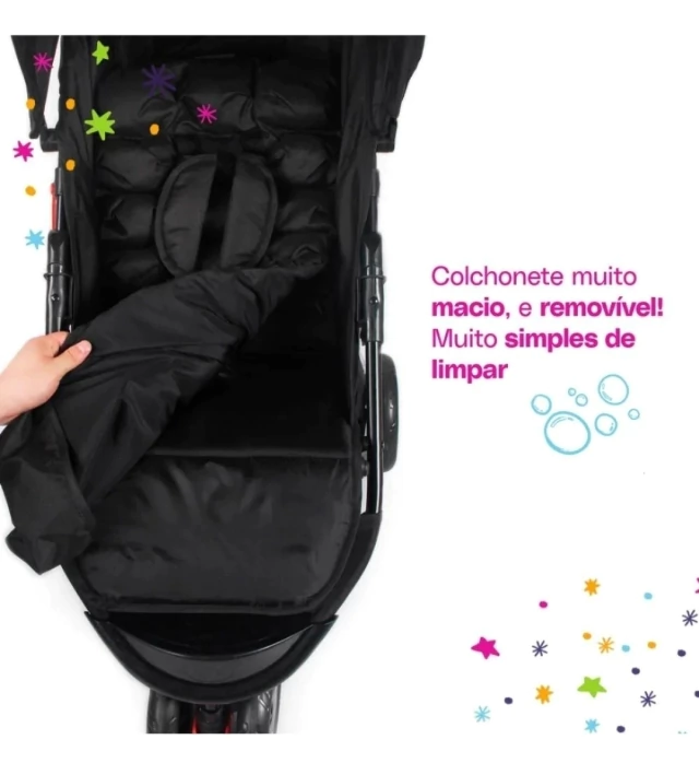 A manopla com revestimento macio proporciona mais conforto durante os passeios, tornando o uso do carrinho ainda mais agradável.